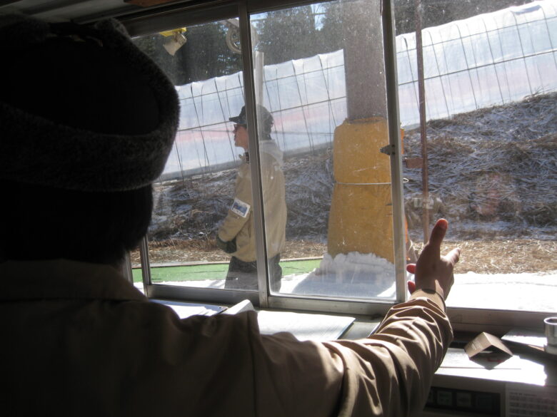 リフトへと繋がる所も、何とか雪入れできました。