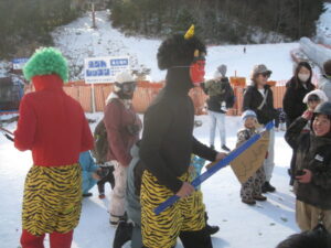 「鬼は外、福は内」 大きなかけ声とともに、節分の豆まきを行いました。 今年も冷凍枝豆でいきました。 鬼役にふんしたスタッフは、鬼らしさにかけており、あまり迫力がありませんでした。 こわがる、小ども・・いない。 みんな、風邪ひかないようにね。