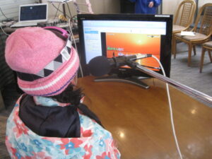 キッズ うたごえコンテストを外でやる予定でしたが、雪が降っていたため屋内で行いました。 モニターに映りだされた歌詞を見ながら、みんな上手に歌いました。 参加賞は、お菓子の袋詰めでした。 HANAの曲を歌ってます。 結構、難しい曲にも挑戦してくれました。 次回も皆様の参加を、お待ちしております。